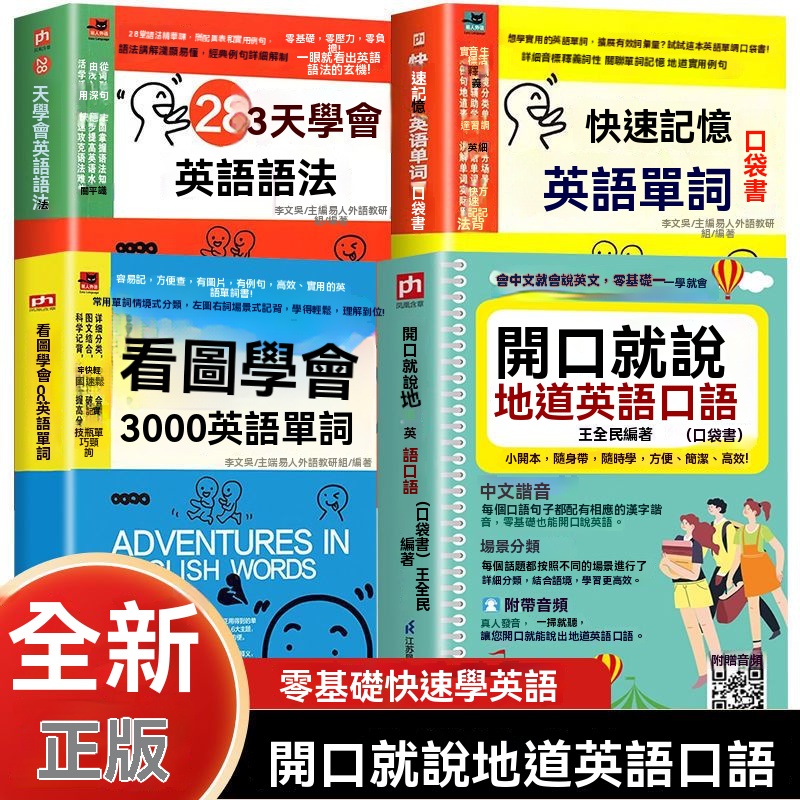 半小時前[1]《開口就说地道英语》+《看圖學會3000英語單詞》 +《28天學會英語語法》+《快速記憶英语單詞》NT$1380